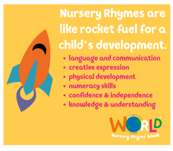 In EYFS we recognise the importance of stories, songs and rhymes. Nursery rhymes are important for young children because they help develop an ear for our language. Both rhyme and rhythm help children hear the sounds and syllables in words, which helps them to learn to read!