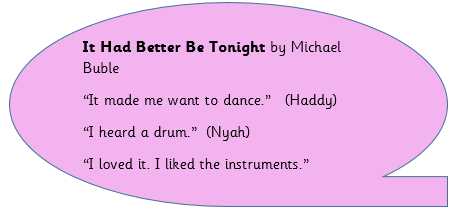 Year One children’s comments about music they have listened to:
